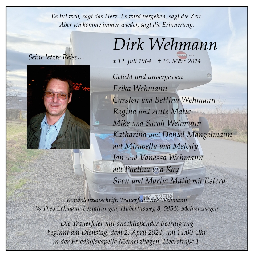 in diesen Tagen fühlen wir mit Ihnen und wünschen Ihnen von Herzen, dass Sie aus den glücklichen Erinnerungen Kraft schöpfen, um positiv in die Zukunft zu gehen. Diese Gedenkseite möge Ihnen dabei helfen, Ihre Trauer zu teilen und das Andenken gemeinsam wachzuhalten.