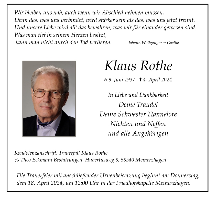 Theo Eckmann Bestattungen, am 09.04.2024
