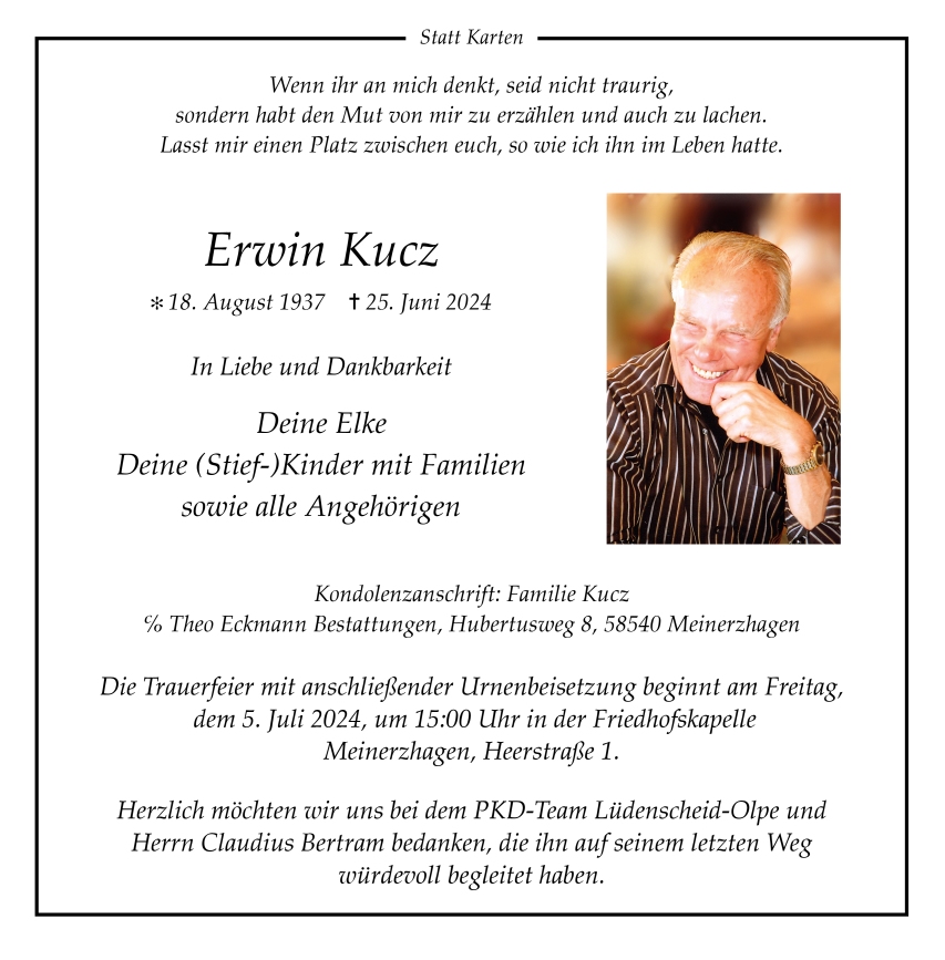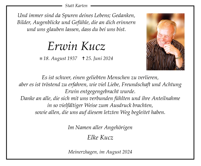 in diesen Tagen fühlen wir mit Ihnen und wünschen Ihnen von Herzen, dass Sie aus den glücklichen Erinnerungen Kraft schöpfen, um positiv in die Zukunft zu gehen. Diese Gedenkseite möge Ihnen dabei helfen, Ihre Trauer zu teilen und das Andenken gemeinsam wachzuhalten.