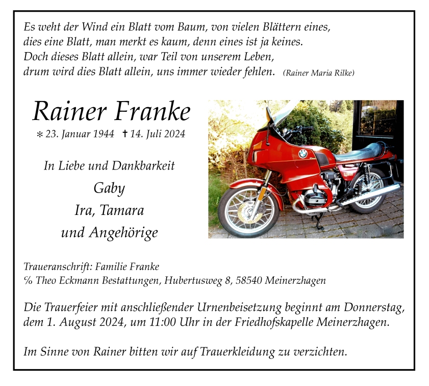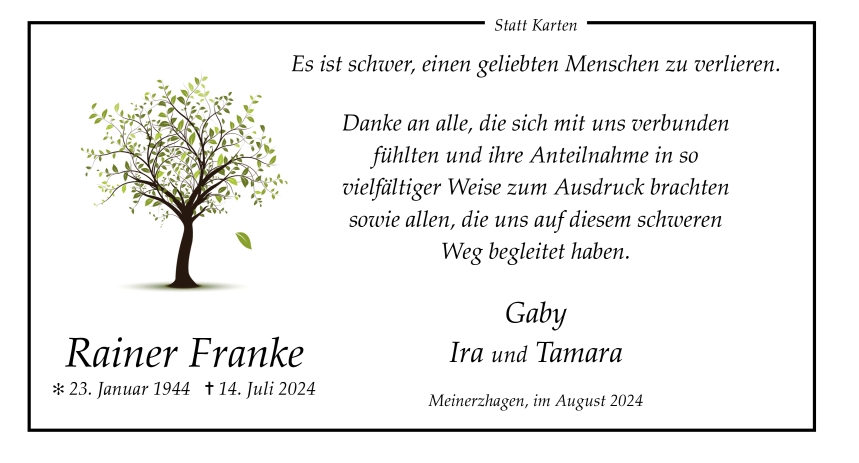 in diesen Tagen fühlen wir mit Ihnen und wünschen Ihnen von Herzen, dass Sie aus den glücklichen Erinnerungen Kraft schöpfen, um positiv in die Zukunft zu gehen. Diese Gedenkseite möge Ihnen dabei helfen, Ihre Trauer zu teilen und das Andenken gemeinsam wachzuhalten.