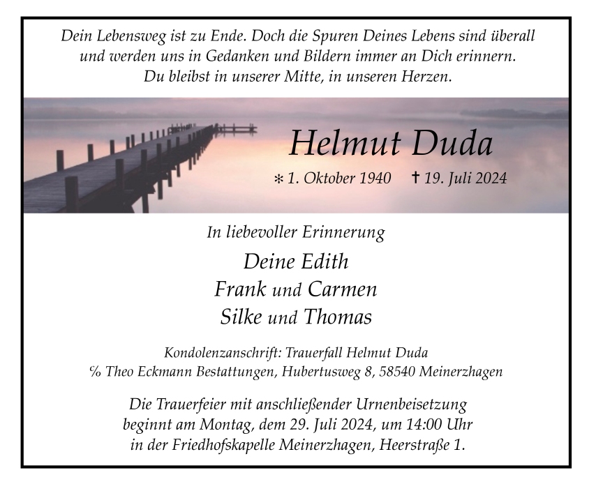 in diesen Tagen fühlen wir mit Ihnen und wünschen Ihnen von Herzen, dass Sie aus den glücklichen Erinnerungen Kraft schöpfen, um positiv in die Zukunft zu gehen. Diese Gedenkseite möge Ihnen dabei helfen, Ihre Trauer zu teilen und das Andenken gemeinsam wachzuhalten.