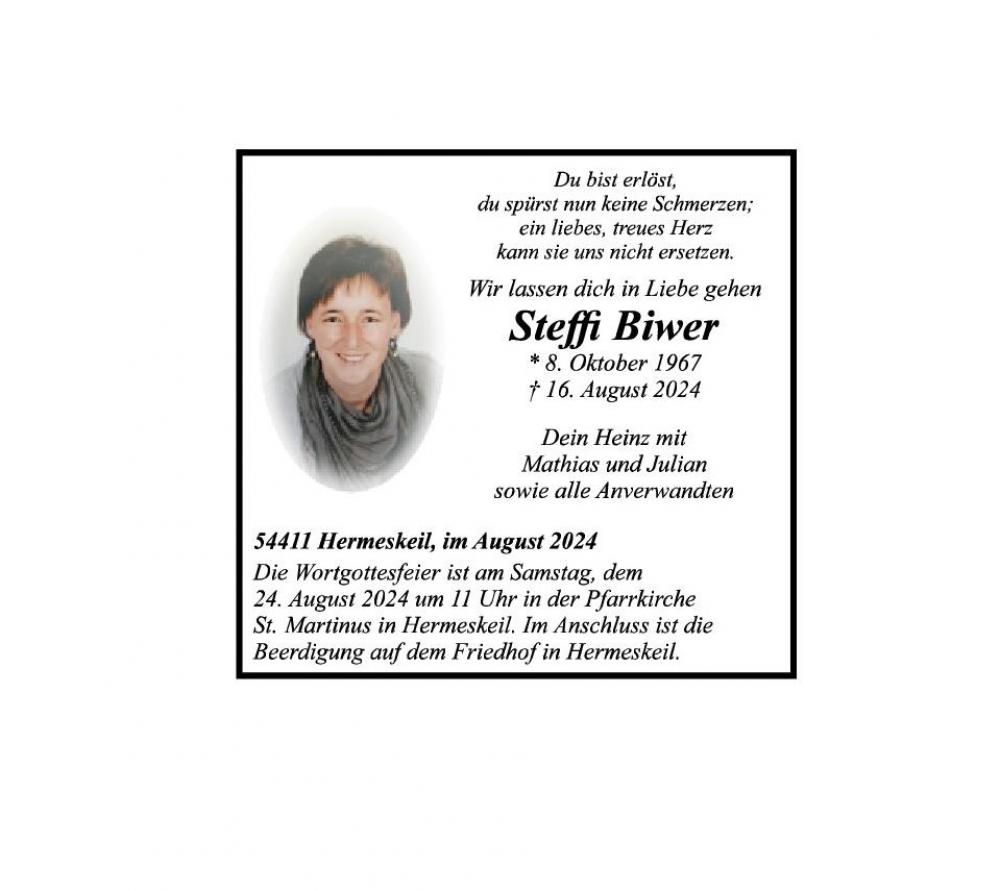 Alles hat seine Zeit, die Zeit der Liebe, der Freude und des Glücks, die Zeit der Sorgen und des Leids....es ist vorbei. Die Liebe bleibt!!!! Erinnerungen sind kleine Sterne, die tröstend in das Dunkel unserer Trauer leuchten. Die Spuren des Lebens bleiben, auch die Augenblicke der Vertrautheit, und der liebevollen Verbundenheit. Aufrichtige Anteilnahme Katharina