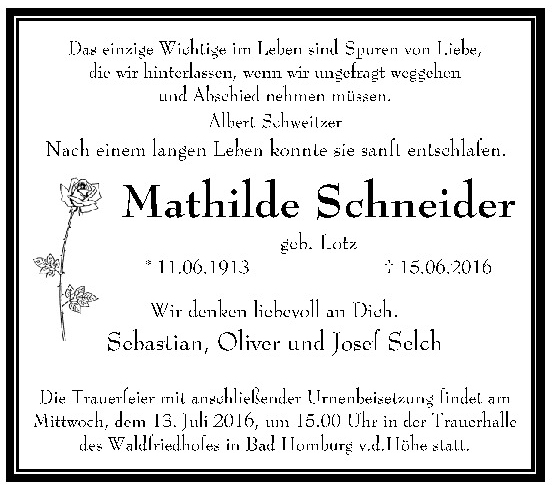 †15.06.2016, Ruhestätte: Waldfriedhof, Bad Homburg