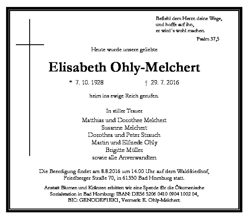 †29.07.2016, Ruhestätte: Waldfriedhof, Bad Homburg