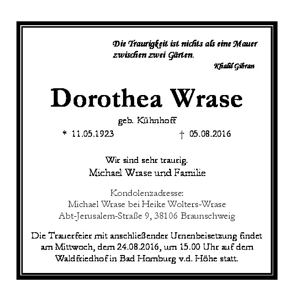 †05.08.2016, Ruhestätte: Waldfriedhof, Bad Homburg