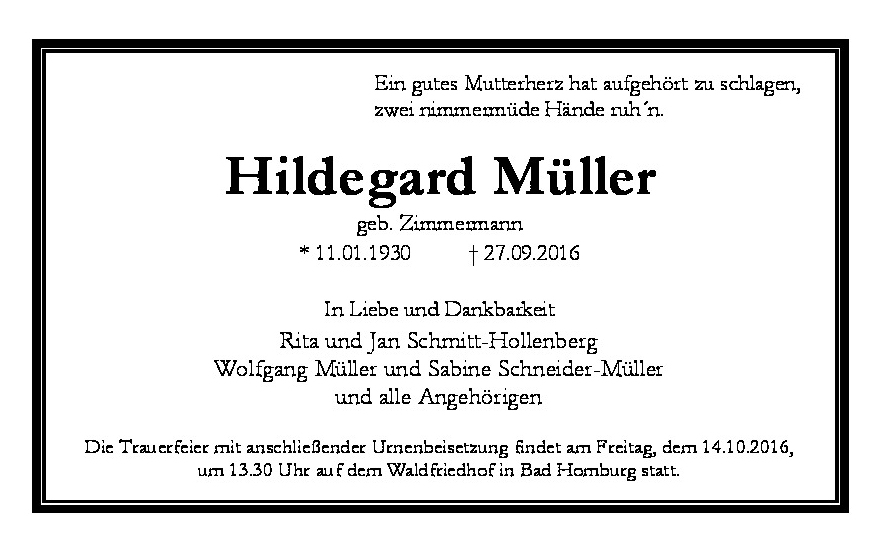 †27.09.2016, Ruhestätte: Waldfriedhof, Bad Homburg