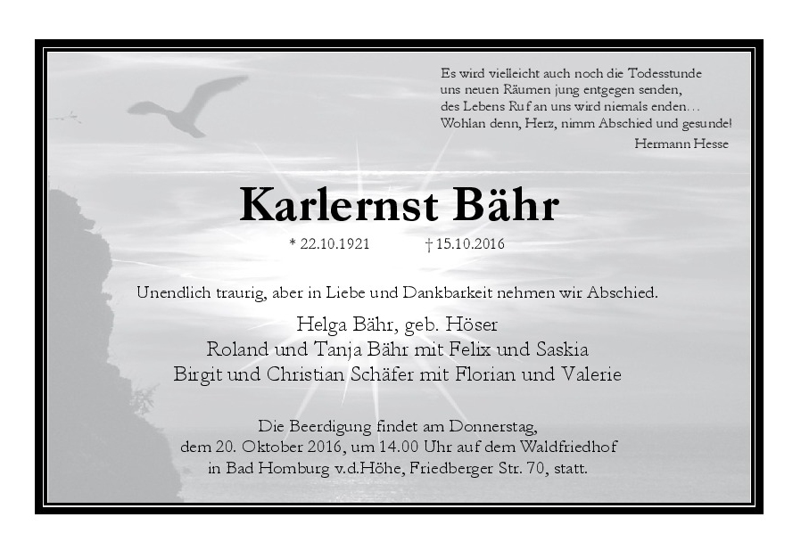 †15.10.2016, Ruhestätte: Waldfriedhof, Bad Homburg