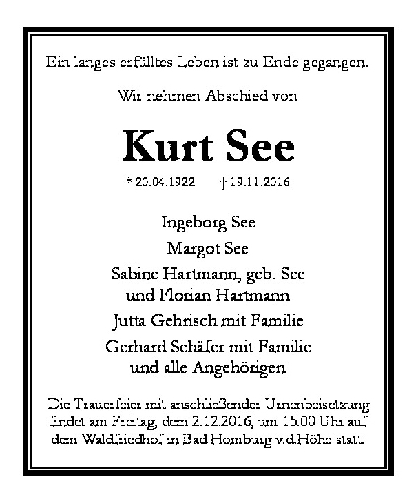 †19.11.2016, Ruhestätte: Waldfriedhof, Bad Homburg