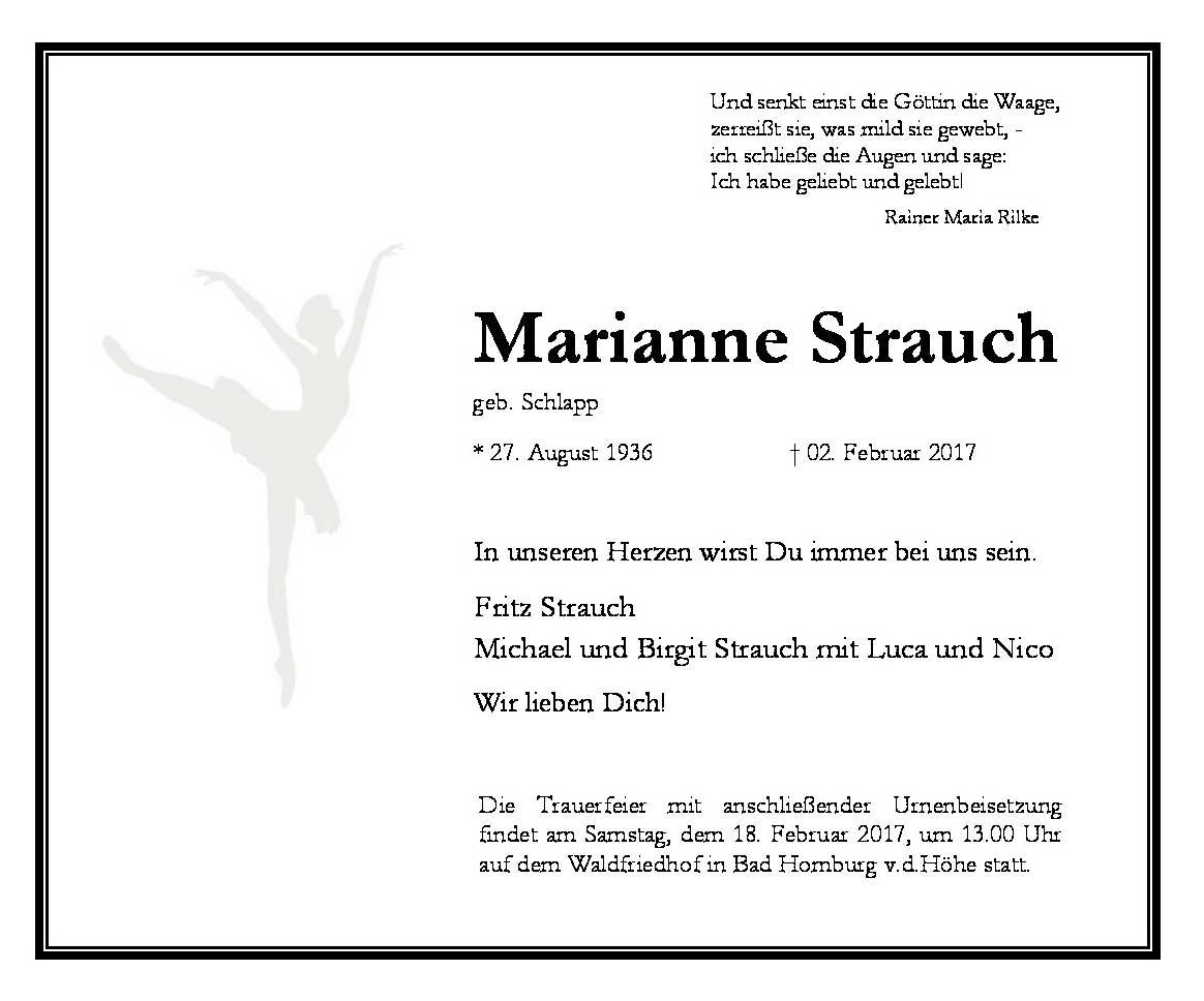 †02.02.2017, Ruhestätte: Waldfriedhof, Bad Homburg