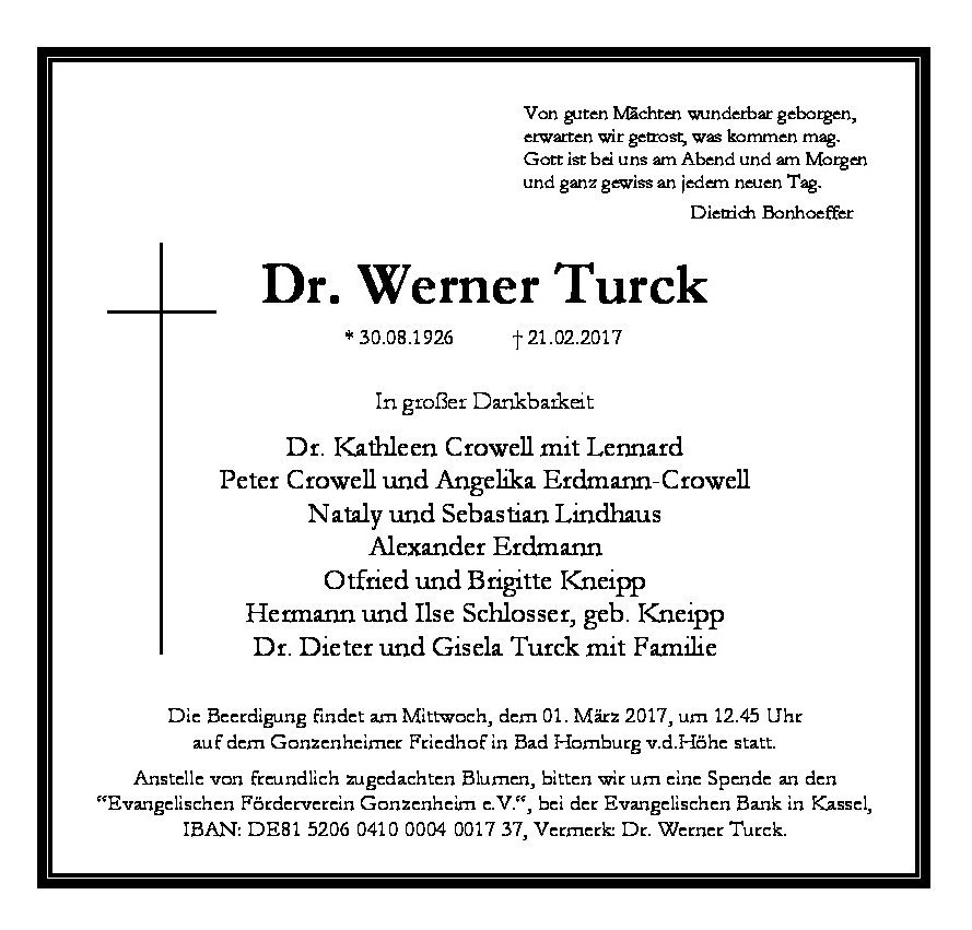 †21.02.2017, Ruhestätte: Gonzenheimer Friedhof, Bad Homburg