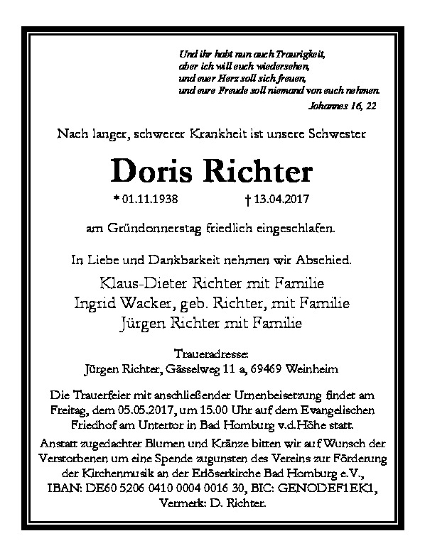 †13.04.2017, Ruhestätte: Ev. Friedhof, Bad Homburg