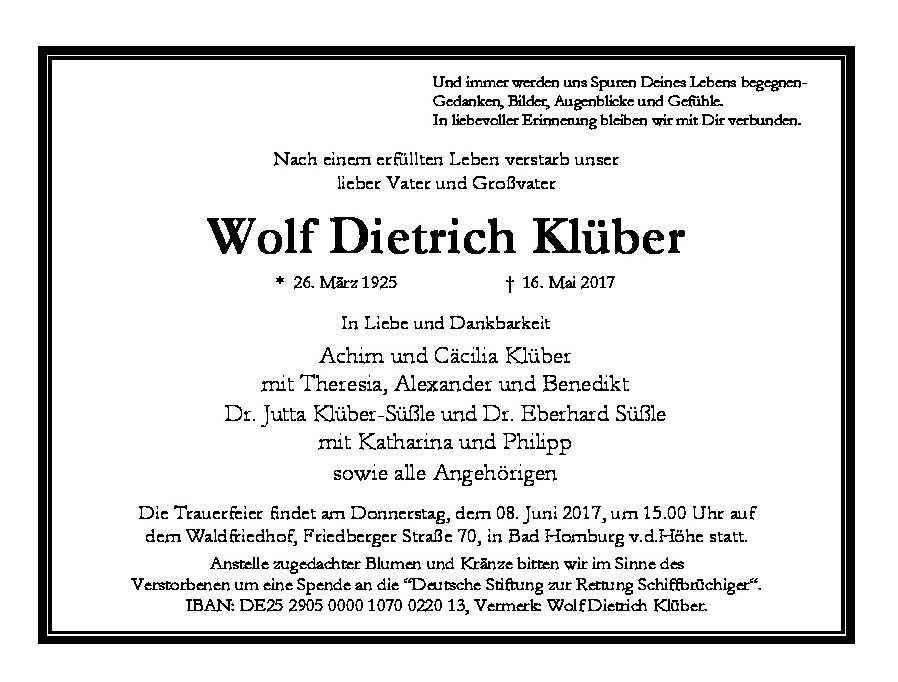 †16.05.2017, Ruhestätte: Waldfriedhof, Bad Homburg