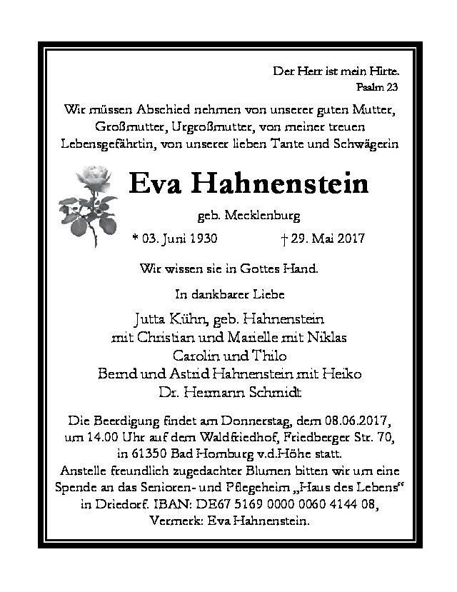 †29.05.2017, Ruhestätte: Waldfriedhof, Bad Homburg