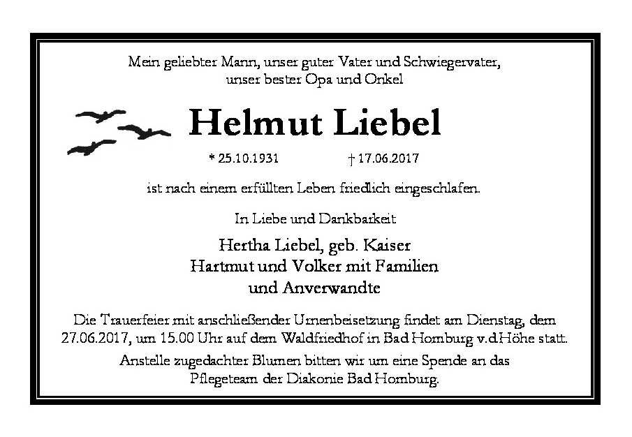†17.06.2017, Ruhestätte: Waldfriedhof, Bad Homburg