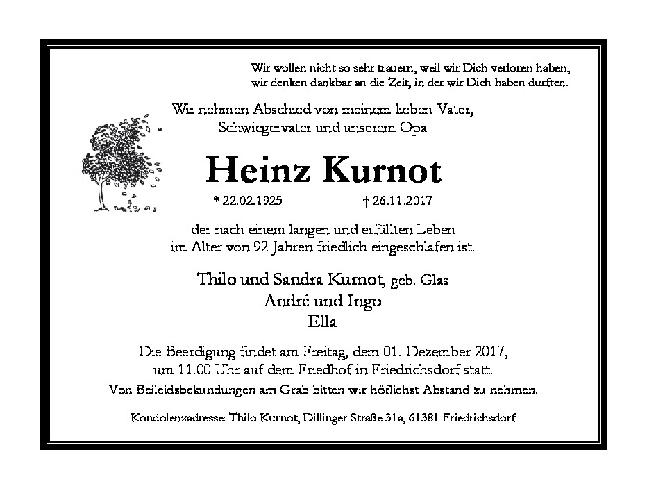 †26.11.2017, Ruhestätte: Hauptfriedhof Friedrichsdorf