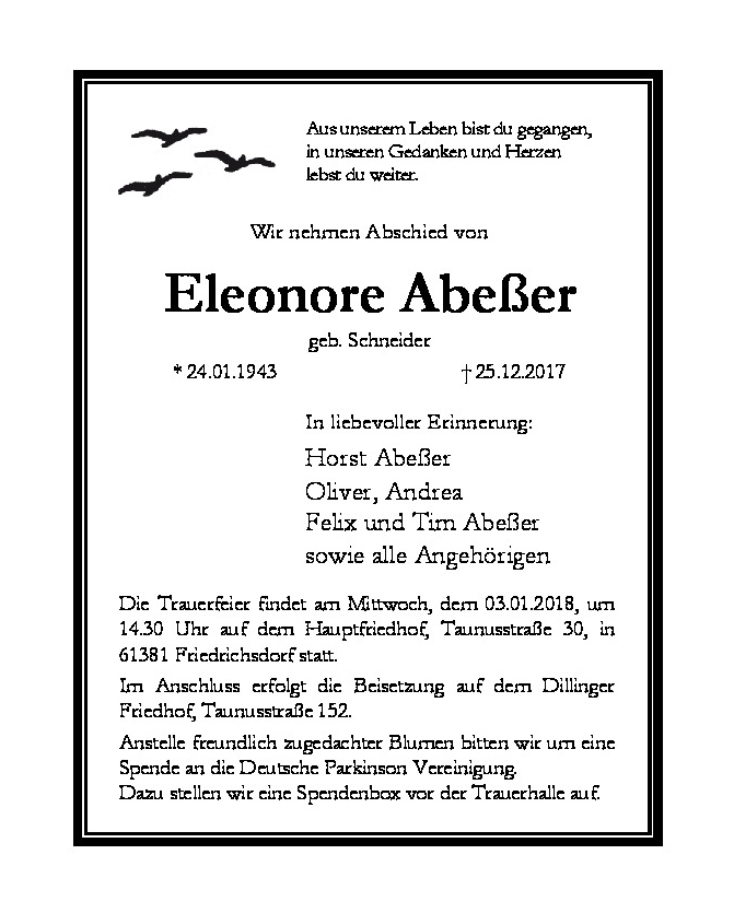 †25.12.2017, Ruhestätte: Dillinger Friedhof