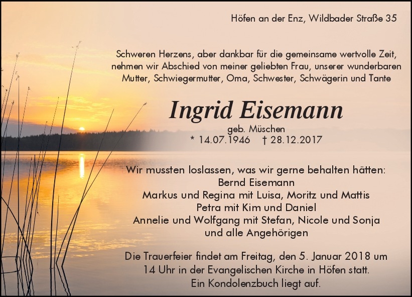 †28.12.2017, Ruhestätte: Friedhof Höfen an der Enz
